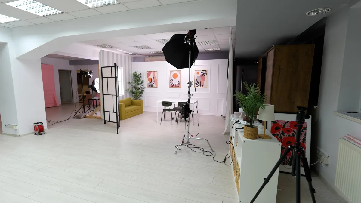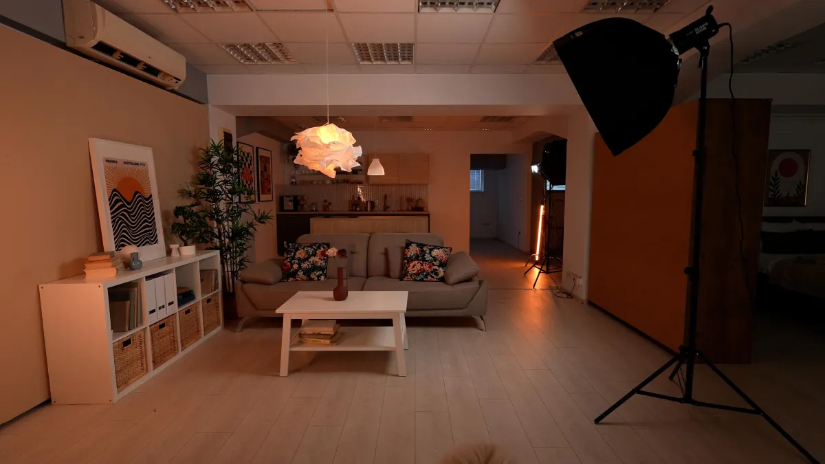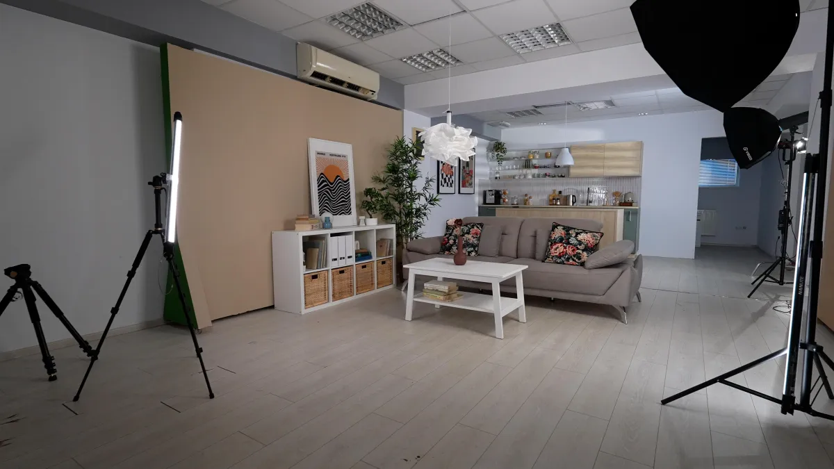 Naš lifestyle prostor je u potpunosti modularan — zahvaljujući pomerajućim zidovima, mobilnom nameštaju i velikoj bazi rekvizita, možemo da kreiramo ogroman broj različitih scenografija u okviru jednog dana. Imali smo produkcije koje su u istom terminu kreirale i koristile 10+ potpuno različitih i funkcionalnih setova. Ako ti treba kuhinja, dnevna soba, studio intervju, podcast, papirna bela pozadina, street-style zid, radni ambijent — sve to može da postoji u istom danu, u istom prostoru. Tvoja ideja = naš zadatak da je izgradimo.